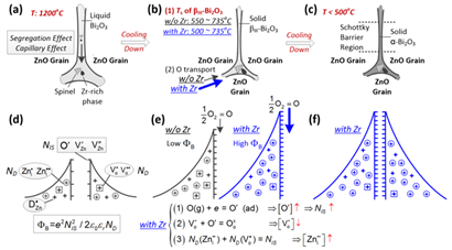 图左:Zr掺杂对ZnO压敏陶瓷烧结降温过程中晶界特性的影响。