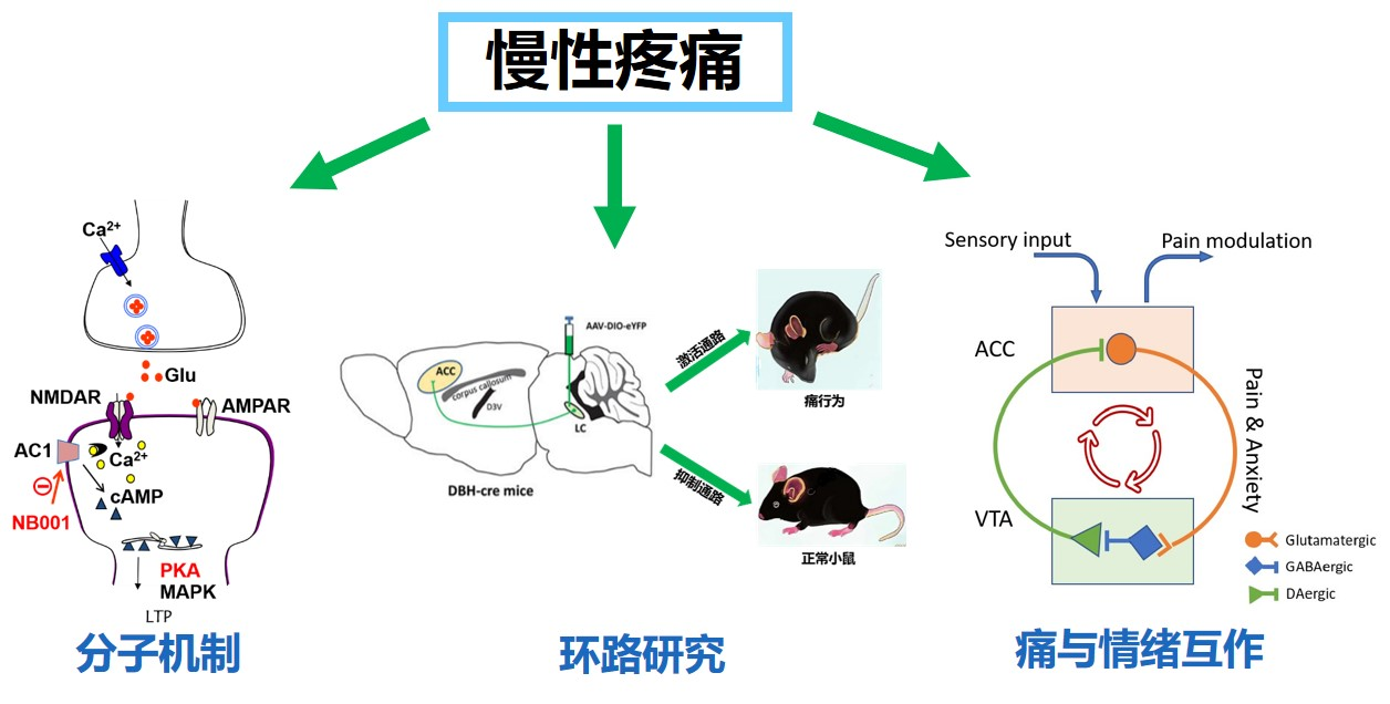 慢性疼痛是世界上主要的健康问题之一,为满足国民健康的发展需求,通过神经环路与功能环路的建立与维持机制,深入理解神经元突触传递的分子与细胞机制,探索慢性疼痛中枢系统以及与负性情绪互作的神经网络调节和分子调节机制开展研究,为慢性疼痛临床治疗提供理论支持,为临床转化研究提供新的药物靶点。