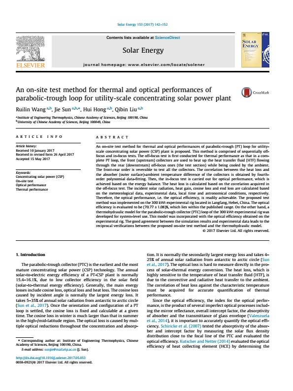 祝贺王瑞林同学论文被Solar Energy期刊接受发表