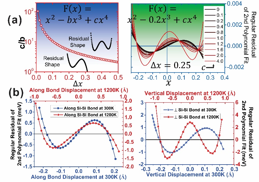 图8. 非简谐性残差分析法数学模型,晶体硅的声子系统中声子非简谐性残差分析法的应用。