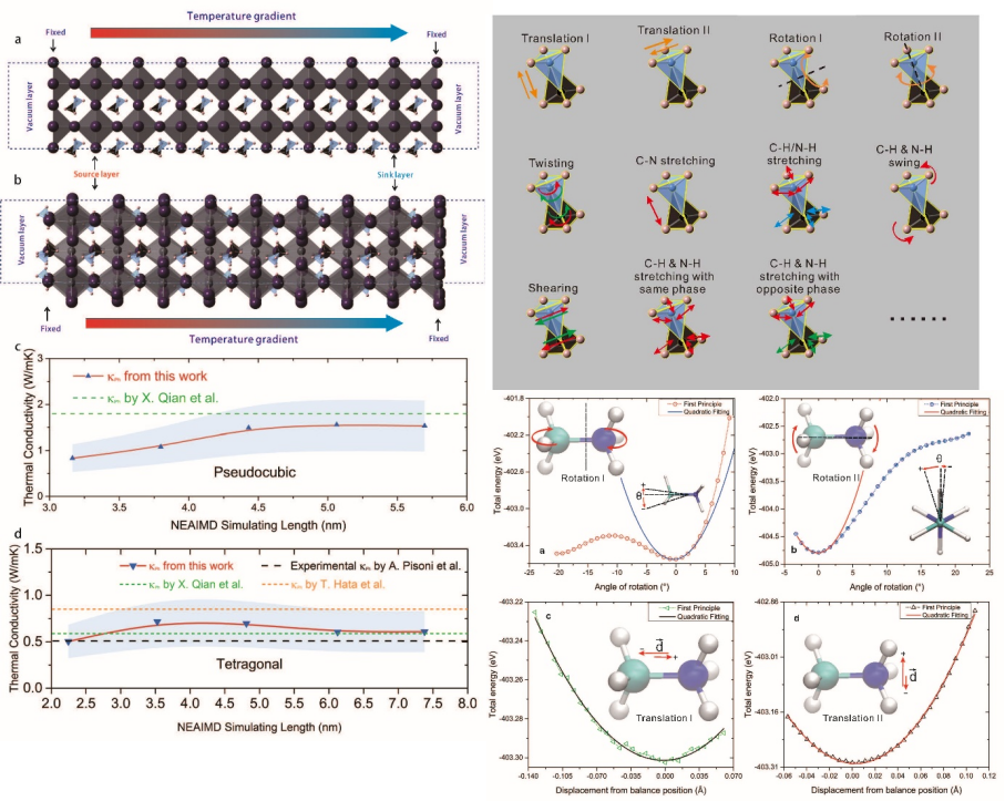 图7. 钙钛矿太阳能材料中有机分子的本征振动模式,及热导率。
