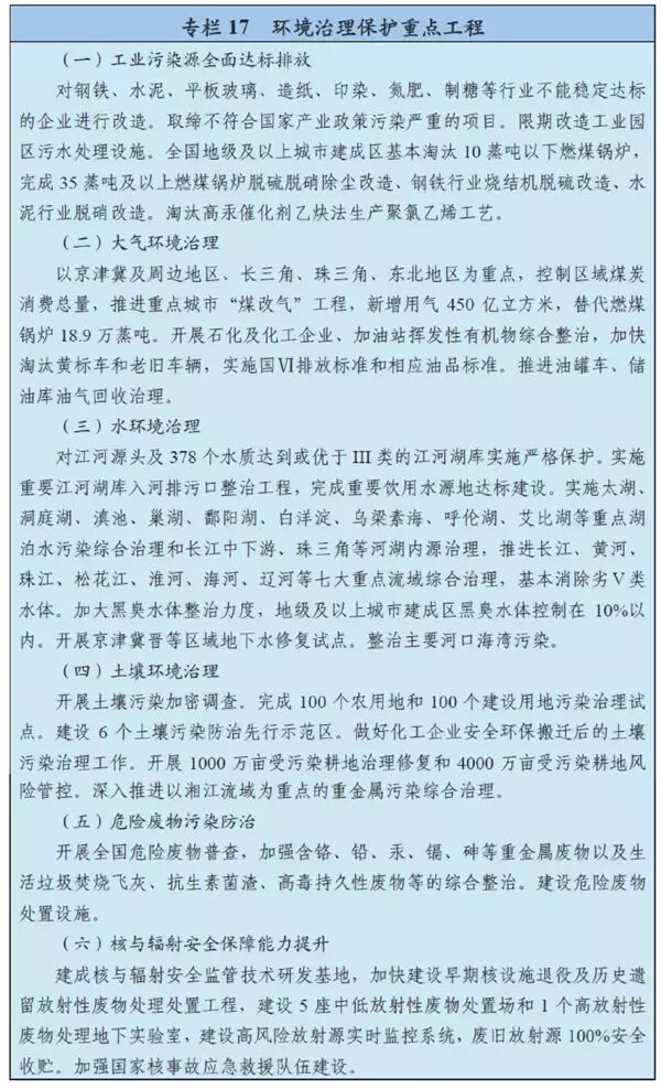 文章导读环保圈 日前,《国民经济和社会发展第十三个五年规划纲要(草案)》正式出炉。本文节选生态环保相关内容,予以业内人士分享学习。阅读原文可查看规划纲要全文。