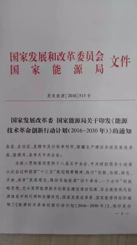 小编今日独家获悉,国家发改委、国家能源局近日下发了《能源技术革命创新行动计划(2016-2030年)》(下称《计划》),并同时发布了《能源技术革命重点创新行动路线图》(下称《路线图》)。