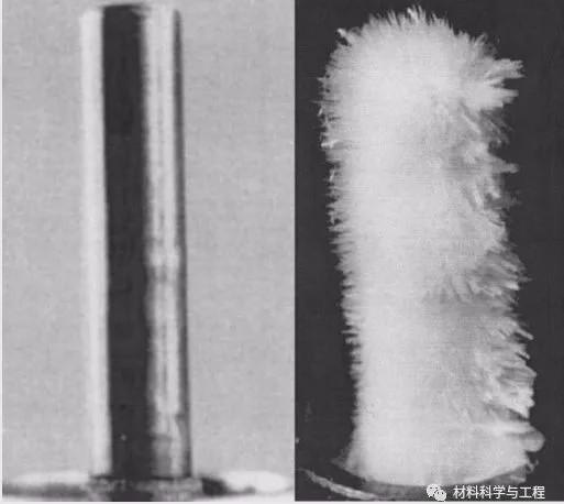 由于超临界水的介电常数显著低于常态水,无机盐在超临界水中的溶解度极低(通常在100ppm左右)。在超临界水氧化环境中,无机盐大量析出,形成结晶层,沉积在设备管道表面,在设备管道内表面和主流流体之间形成了一道阻隔层。该无机盐层对于设备材料的腐蚀是起到抑制作用还是促进作用,一直是本领域学者关注的焦点问题。早在2004年,Hodes等人就证实了盐沉积层的存在,并通过实验手段获得了盐沉积层在高压釜实验装置的热电偶套管上的沉积形貌(如图1所示)。