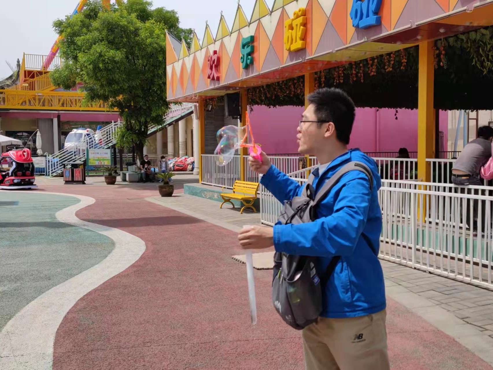 自电视剧《白鹿原》火遍全国后,以《白鹿原》为主题的休闲娱乐乐园,一度人气爆棚。白鹿仓主题乐园像一个缩小版的欢乐谷,东郊的乐华城,娱乐设施齐全,该有的刺激紧张一个不少。上午,课题组全体教师同学们在这里选择自己喜欢的项目尽情游玩:有人弯弓射箭,英姿飒爽;有人手握方向盘,蓄势待发;还有人吹起了巨大的泡泡……