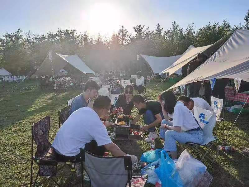 下午,大家来到了营地,零食饮料,谈笑桌游,欢乐不断。傍晚,烧烤三五成群,笑声震天。