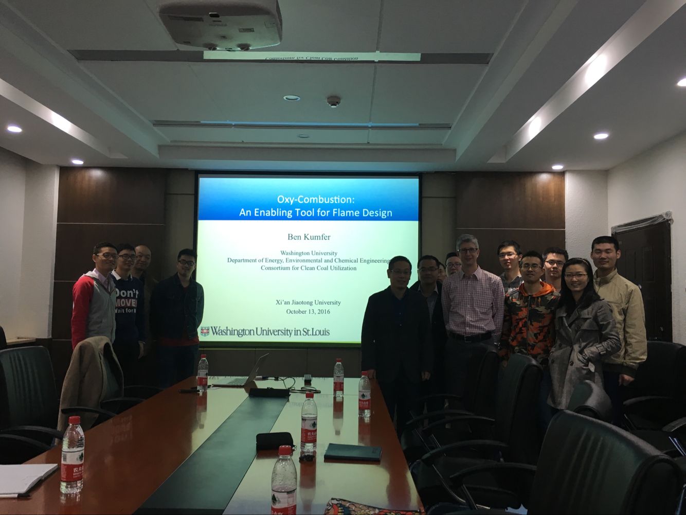 - 2016年10月13日,华盛顿大学圣路易斯分校Benjamin Kumfer副教授同课题组进行交流讨论,并做了关于加压富氧燃烧、soot以及颗粒物排放的报告(报告题目:Oxy-Combustion:An enabling tool for flame design)。