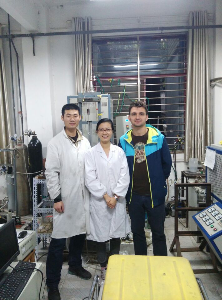 2016年10月23-28日克罗地亚萨格勒布大学Tibor博士生来课题组实验室参观与交流学习,并与课题组博士生李艳与白胜杰共同开展生物质热解一维沉降炉实验。