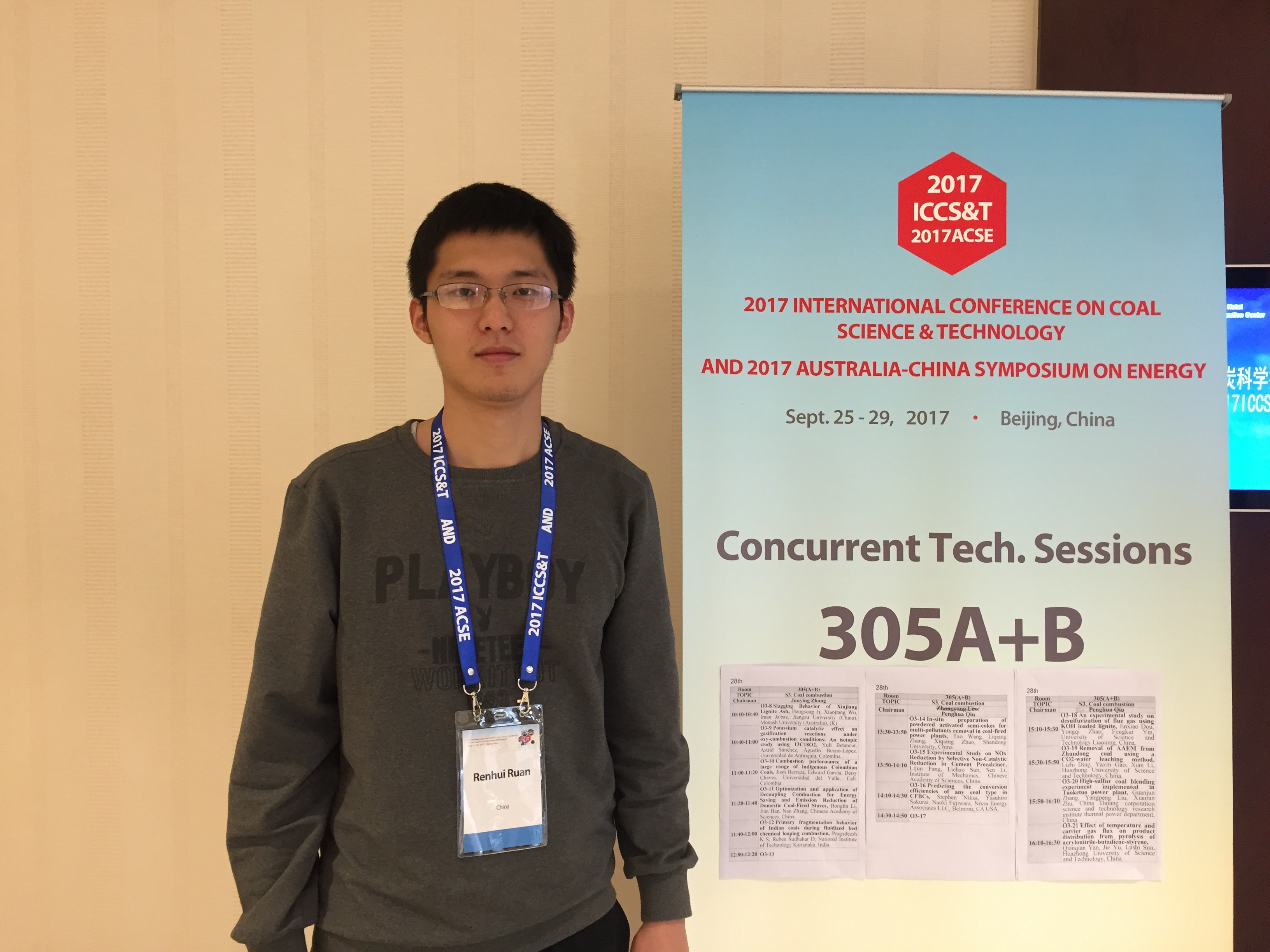 2017年9月25日-9月28日,第18届国际煤炭科学技术大会与2017中澳能源论坛在北京国际会议中心举行,我课题组的阮仁晖博士参会并做口头汇报:“characteristics of fine particulate matter formation during combustion of lignite riched in AAEM(alkali and alkaline earth metals) and sulfur”。