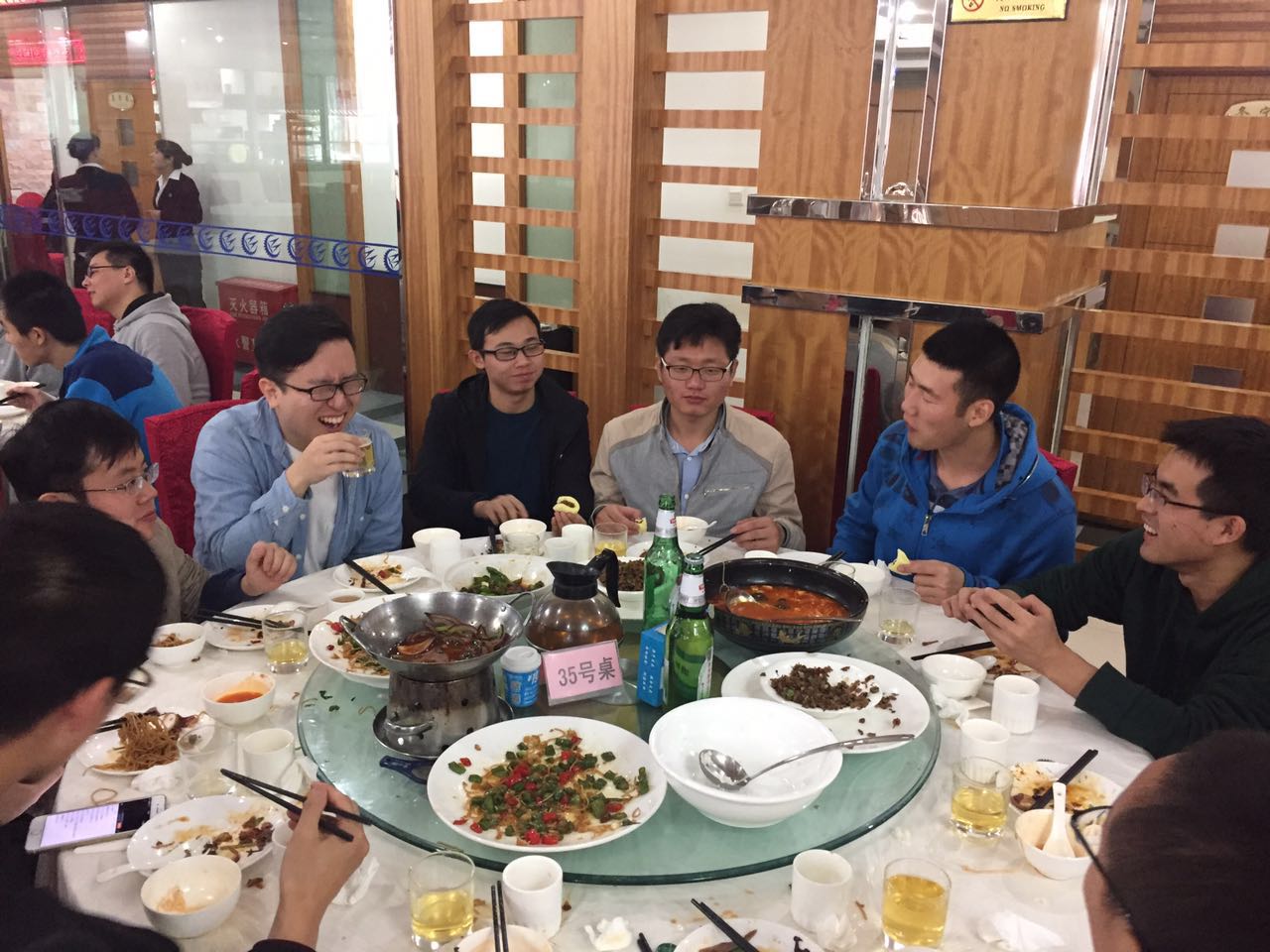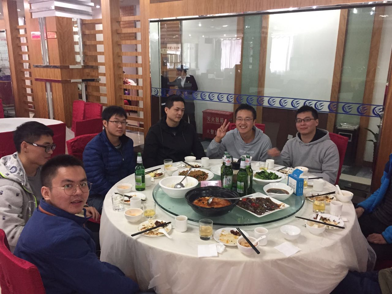 2017年10月18日,谭老师指导的两位工程硕士(曹玉华、毛鹏涛)和王老师指导的三位工程硕士(胡志洁、刘凤、程言龙)顺利答辩。经答辩委员会一致决定,同意五位工程硕士通过论文答辩。中午教研室老师同学和答辩委员会评委、五位工程硕士在康桥酒楼聚餐。
