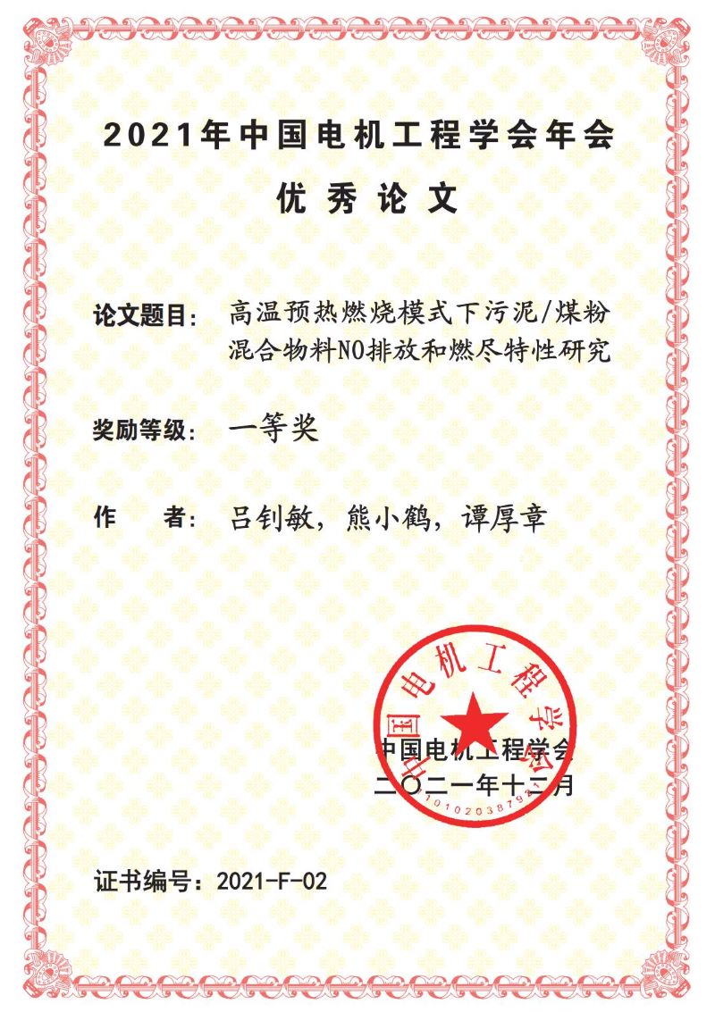 - 吕钊敏博士在中国电机工程学会年会作关于污泥煤粉混燃的口头报告,论文获年会一等奖
