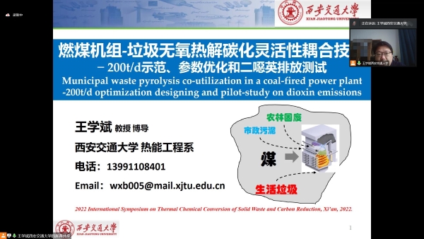 - 谭厚章教授以及王学斌教授在2022年固体废物热化学转化与碳减排国际研讨会分别就风机叶片及垃圾的热化学处理作主题报告