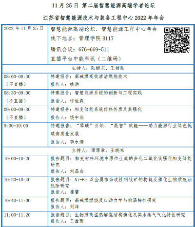 谭厚章教授于2022年11月25日受邀参加第二届智慧能源高端学者论坛江苏省智慧能源技术与装备工程中心2022年年会,并作为分论坛主持人主持会议。