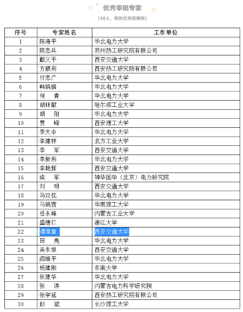 祝贺谭厚章教授入选《热力发电》2022年度优秀审稿专家《热力发电》。