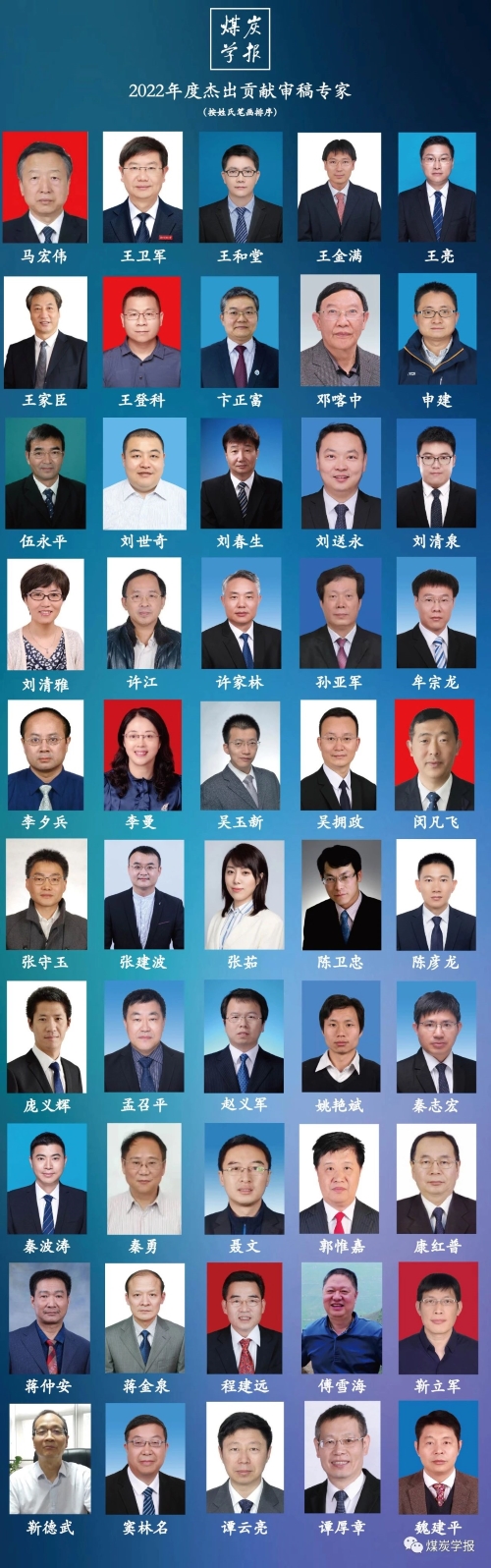 煤炭学报编辑部综合考虑审稿质量、审稿速度、审稿数量等多项指标,从730余位审稿专家中评选出“《煤炭学报》2022年度杰出贡献审稿专家”50名!名单如下: