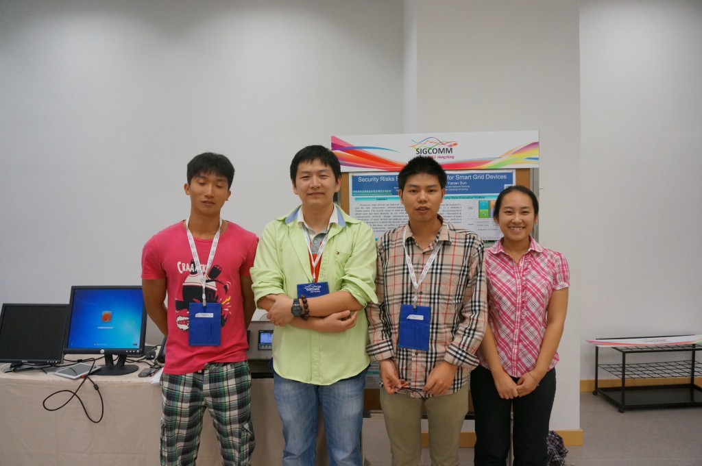 与研究生刘杨、孙亚楠同学、大四实习生刘加贺同学(已保研只清华大学)参加于8月12-16日在香港举的2013 ACM SIGCOMM会议,并宣讲Demo论文Security Risks Evaluation Toolbox for Smart Grid Devices.