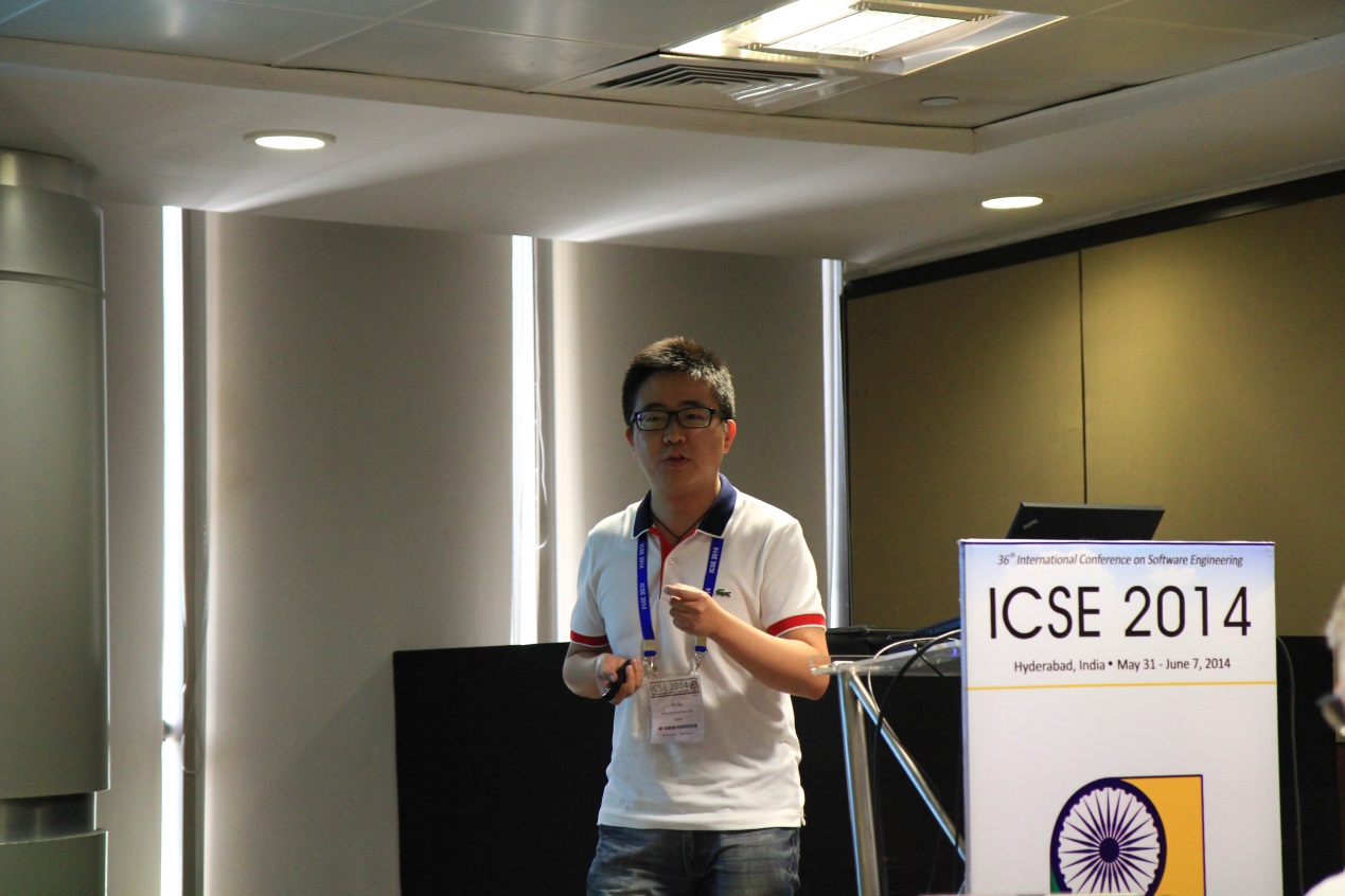 2014年5月31日至6月8日,可信软件小组博士生屈宇和王海军参加了在印度举行的第36届软件工程国际大会(ICSE 2014),并做报告。