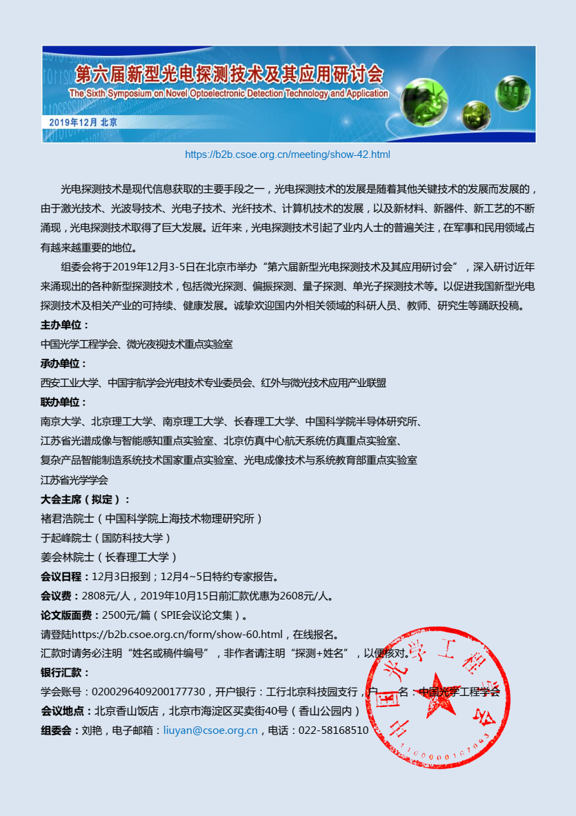 第六届新型光电探测技术及其应用研讨会