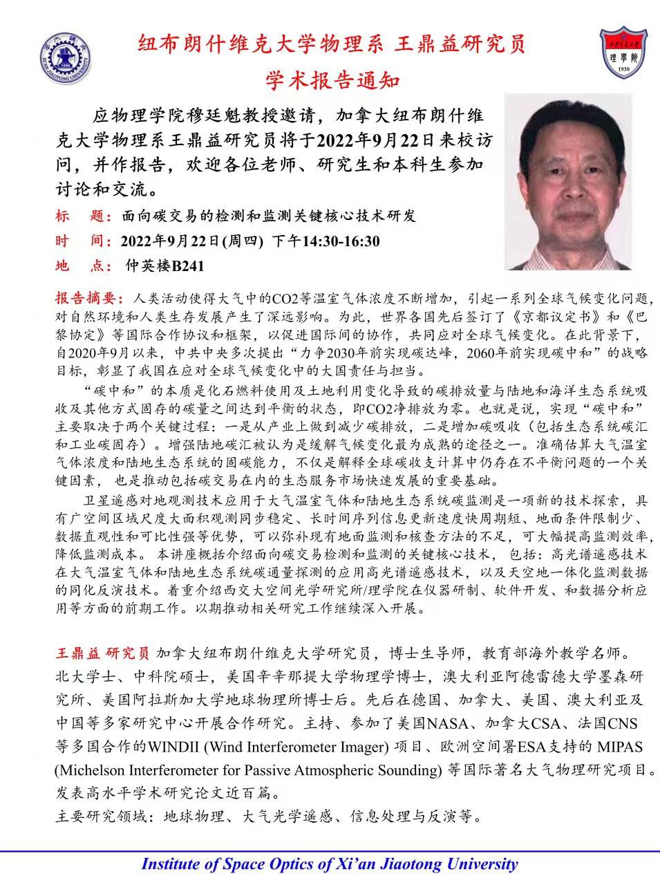 学术报告:加拿大牛布朗士维克大学 王鼎益 研究员受邀与课题组研究生进行座谈