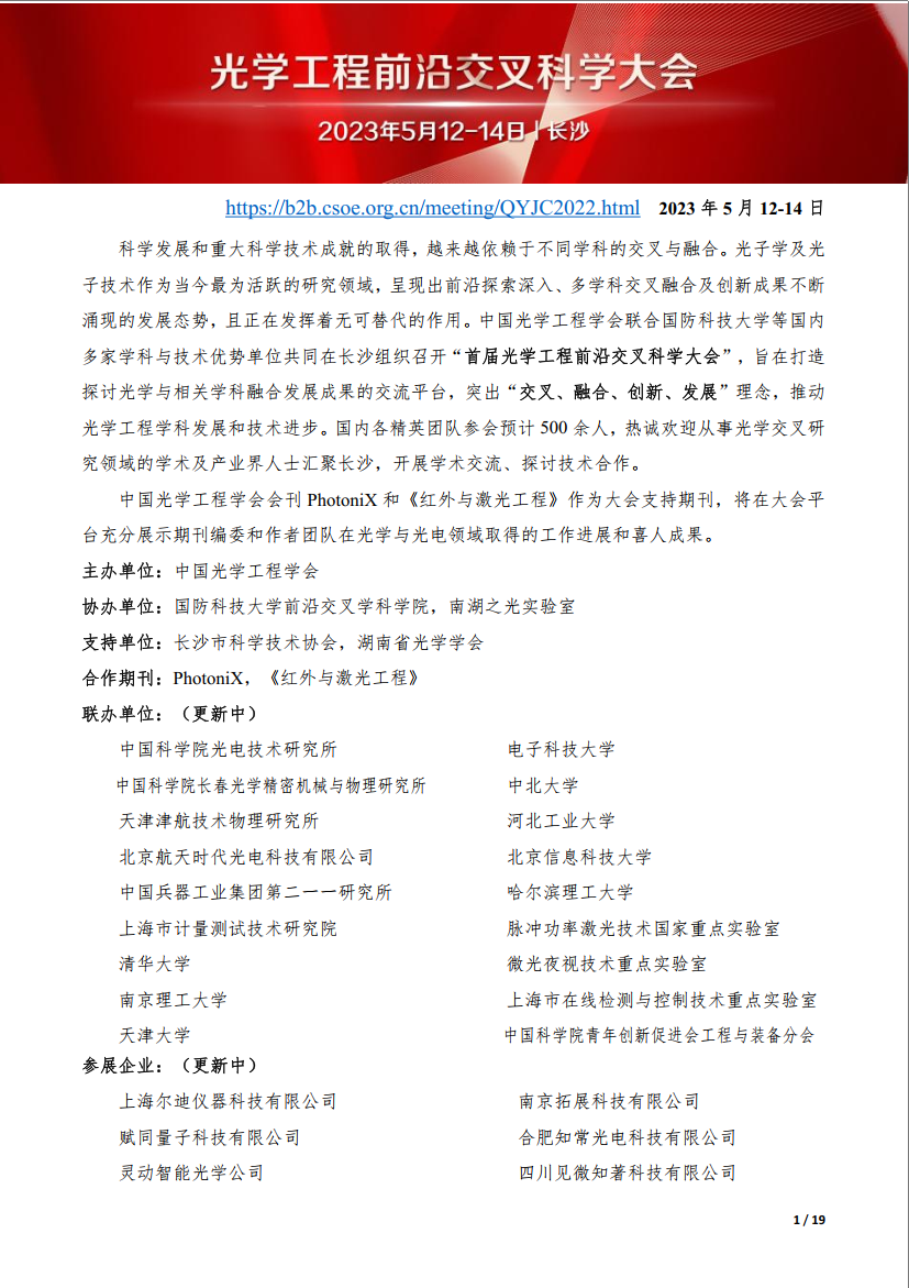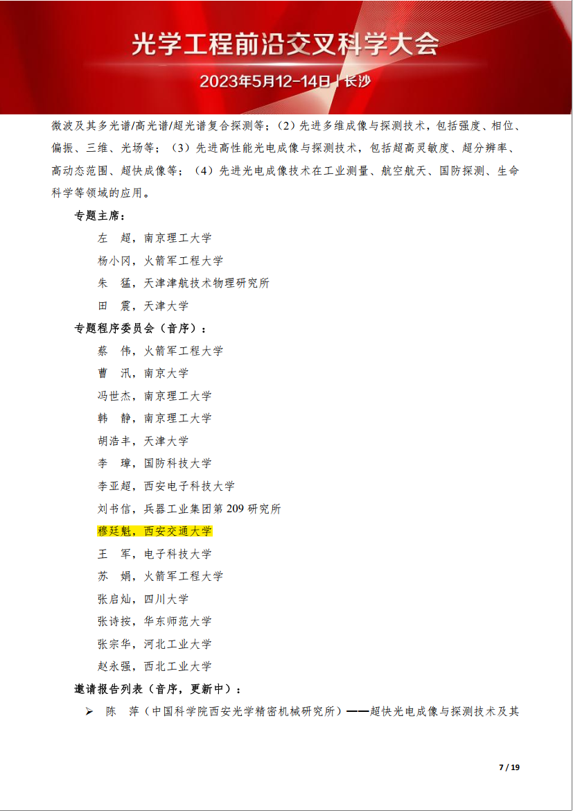 学术会议:受邀参加2023光学工程前沿交叉科学大会(特邀报告:偏振光谱图像实时获取及智能解译)
