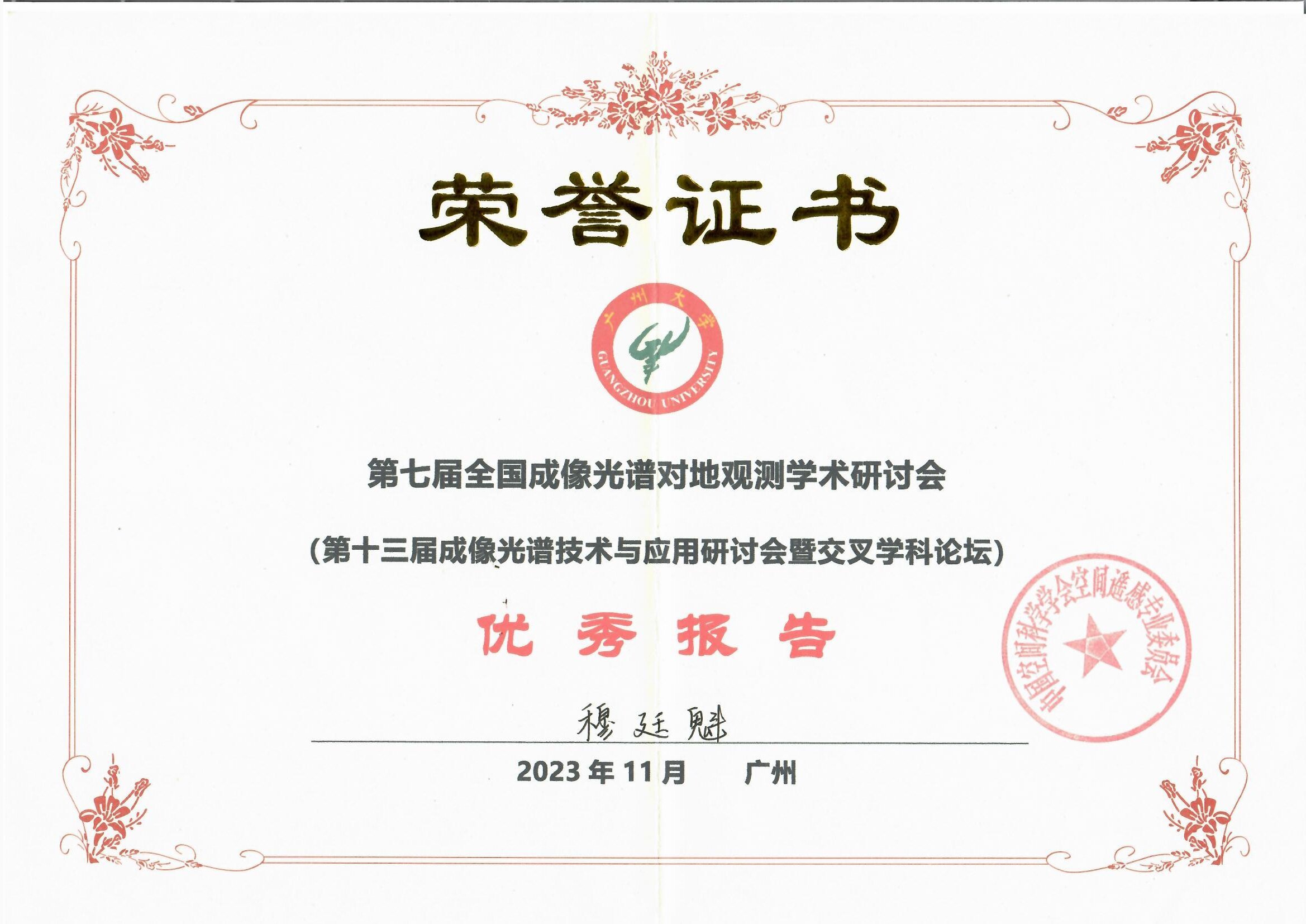 - 学术会议:受邀参加第七届全国成像光谱对地观测学术研讨会(特邀报告:偏振光谱多维信息实时成像遥感)