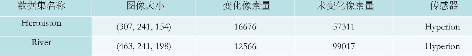 用于验证PPL框架性能的数据集包括River数据集和Hermiston数据集,如图3,每个数据集包括双时相高光谱图像和参考变化图,统计信息如表1。