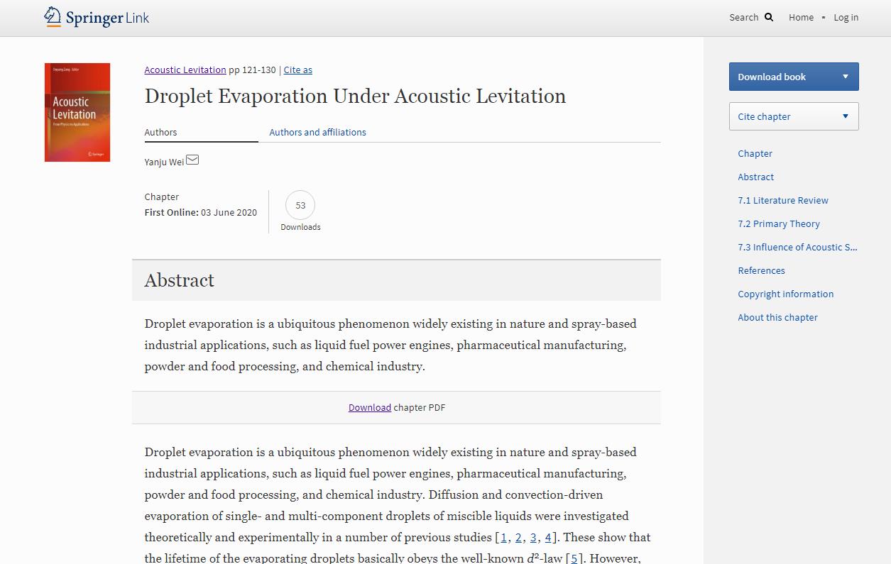 热烈祝贺参编专著《Acoustic Levitation》由Springer出版!