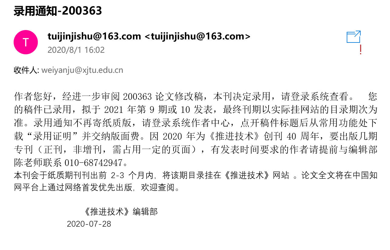 - 《超声悬浮乙醇液滴气动变形与破碎特性研究》被《推进技术》录用