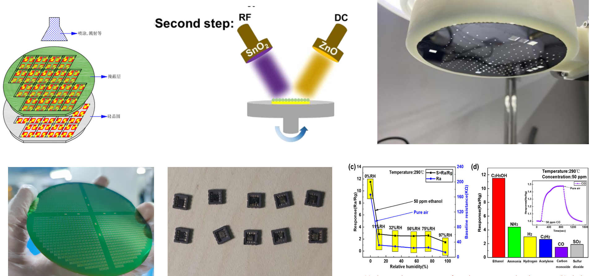 (1)硬掩蔽薄膜兼容技术:可实现各种大面积气敏材料成膜工艺的气体传感器加工;