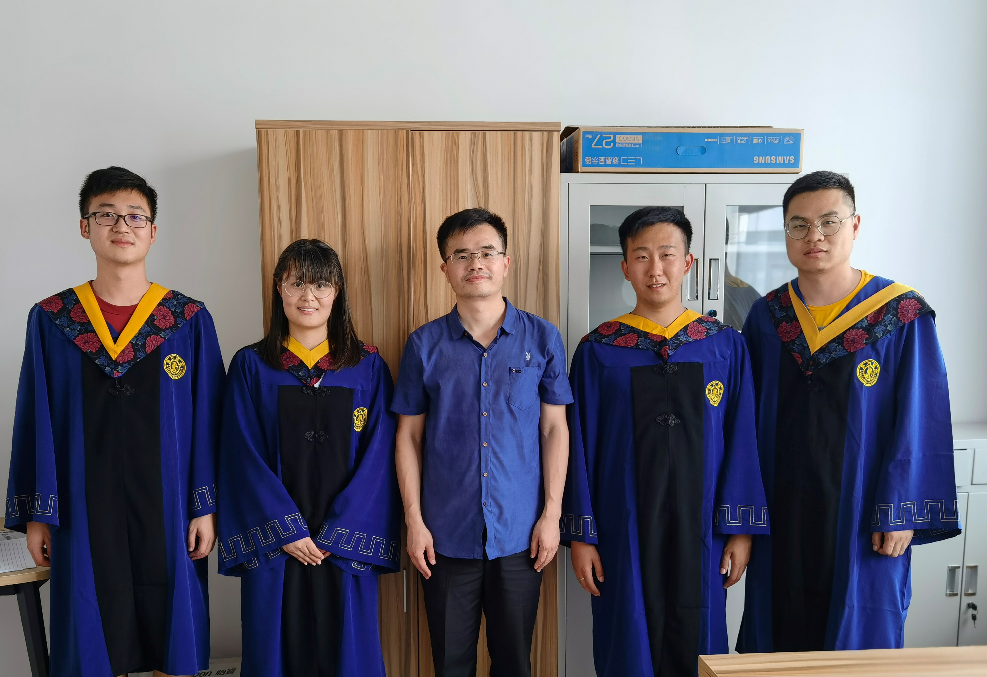 与团队2021届毕业生合影(李明、田雪雪、王磊、赵赢、田军军)