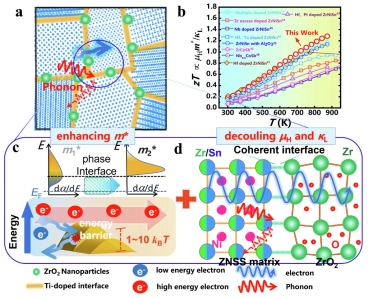 高效热电材料具有大的温差电动势α、高的电导率σ、以及低的热导率κ。传统热电材料的电声输运参数相互依赖、此消彼长,如何协同优化这些相关联的参数以提升综合性能一直是热电材料领域的关键科学问题。