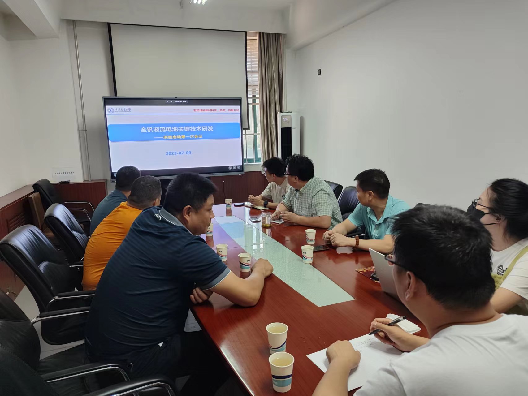 7月9日,陕西有色绿能和五洲矿业股份有限公司一行访问课题组,双方对即将开展的液流电池储能项目进行深入交流。