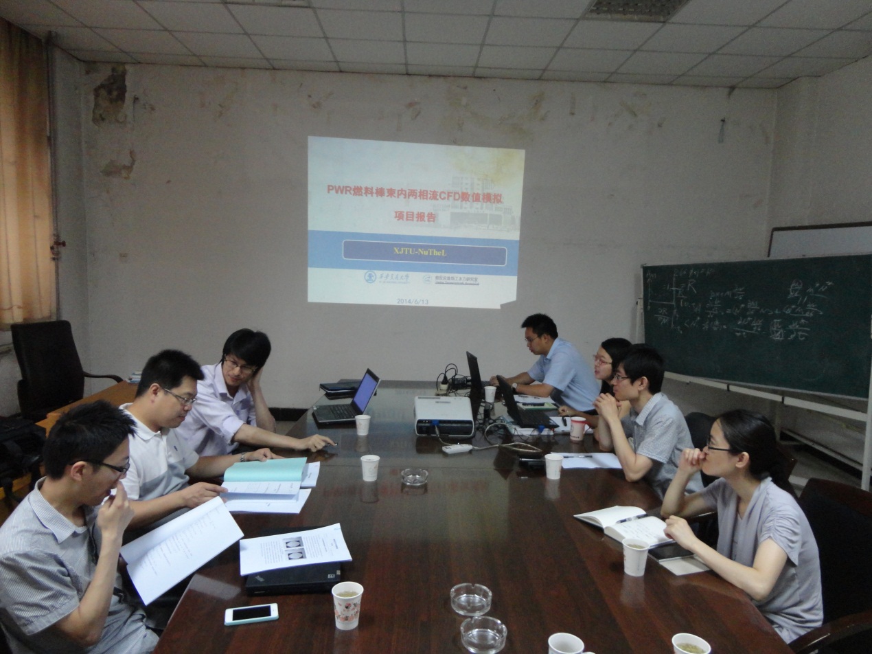2014年6月12日至13日,上海核工程研究设计院燃料室主任周勤、丁阳、干富军一行来西安与西安交通大学与核反应堆热工水力研究室(XJTU-NuTHeL)进行了讨论交流会议。周勤主任和丁阳介绍了上海核工程研究设计院燃料室的专业能力以及国内外的研究发展现状;并就基础研究、实验研究和人才引进等方面提出合作意向。西安交大核反应堆热工水力研究室课题组秋穗正教授汇报了课题组的人员配置情况和近些年课题组在实验研究和理论研究方面取得的科研成果;田文喜副教授重点介绍了棒状燃料元件程序、环状燃料元件程序、FACTRAN程序、严重事故下燃料氧化等研究成果;研究生邓阳斌介绍了板状燃料元件性能程序开发的研究成果;郝凯汇报了棒状燃料元件性能瞬态分析程序开发的研究成果;张蕊介绍了PWR燃料棒束内两相流CFD数值模拟项目报告。秋穗正教授、田文喜副教授、张大林讲师、张亚培讲师、研究生左巧林、张蕊、郝凯、邓阳斌等参加了本次交流会。