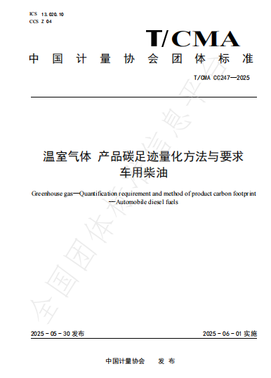 5月13日,由中国计量协会立项,山东省碳计量中心(东营)、中国计量科学研究院、西安交通大学等30余家单位共同编制的《温室气体 产品碳足迹量化方法与要求 车用柴油》团体标准在京通过相关领域权威专家评审,并由中国计量协会与2025年5月30日发布,2026年6月1日实施。该标准(标号:T/CMA CC247-2025)是我国石化行业首个依据《温室气体 产品碳足迹量化要求和指南》(GB/T 24067-2024),专门针对车用柴油碳足迹量化方法与要求制定的团体标准。该标准的过审,标志着我国石化领域碳管理迈出了关键一步,为行业绿色低碳转型提供了科学依据和技术支撑。