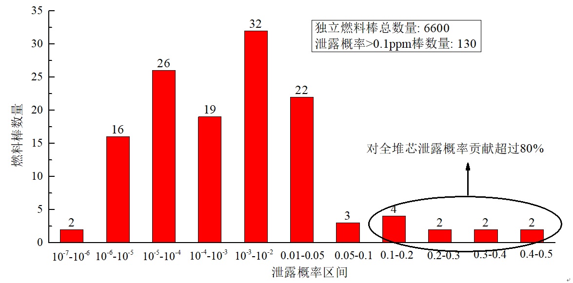 图3 全堆芯燃料棒SiC包壳泄漏概率统计