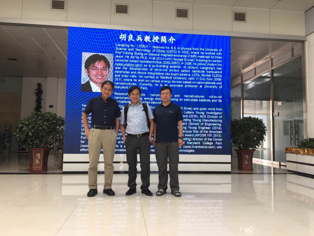 内容: 7月19日美国马里兰大学胡良兵教授来访,并做了“Garnet Based Solid State Li-Metal Batteries(基于石榴石型固态电解质的锂金属电池)”的学术报告。之后胡教授与我们全组成员在愉快活跃的气氛中进行学术讨论交流,勉励全组成员在科研道路上继续努力,做出更多更好的工作。