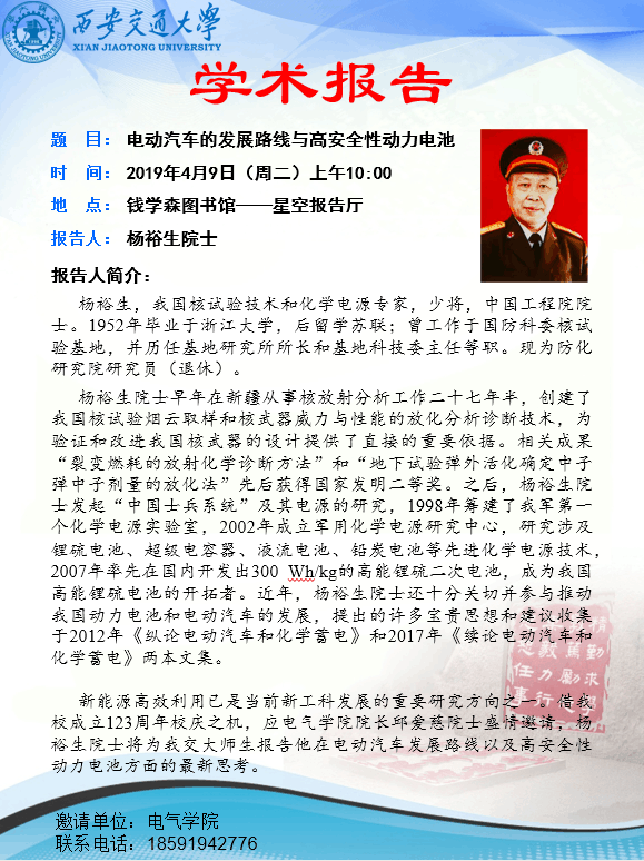 内容:2019年4月9日下午,中国工程院院士杨裕生老师莅临我组,进行学术交流与指导。