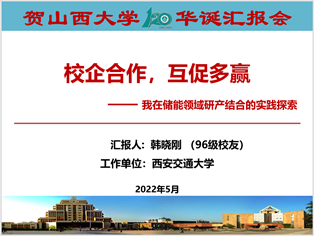 内容:5月19日,值母校山西大学120周年校庆之际,应山西大学电力与建筑学院邀请,韩晓刚教授在线上为山西大学及来自全国多所院校的师生做了题为“校企合作,互促多赢——在储能领域研产结合的实践探索”的学术讲座,基于其在储能领域的科研工作,从第一视角讲述其课题组在校企合作研产结合方面的实践探索之路。