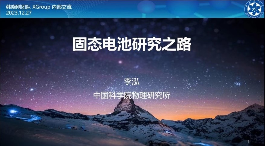 2023年12月27日,中国科学院物理研究所李泓研究员来我组进行学术交流,并做题为《固态电池研究之路》的线上报告。