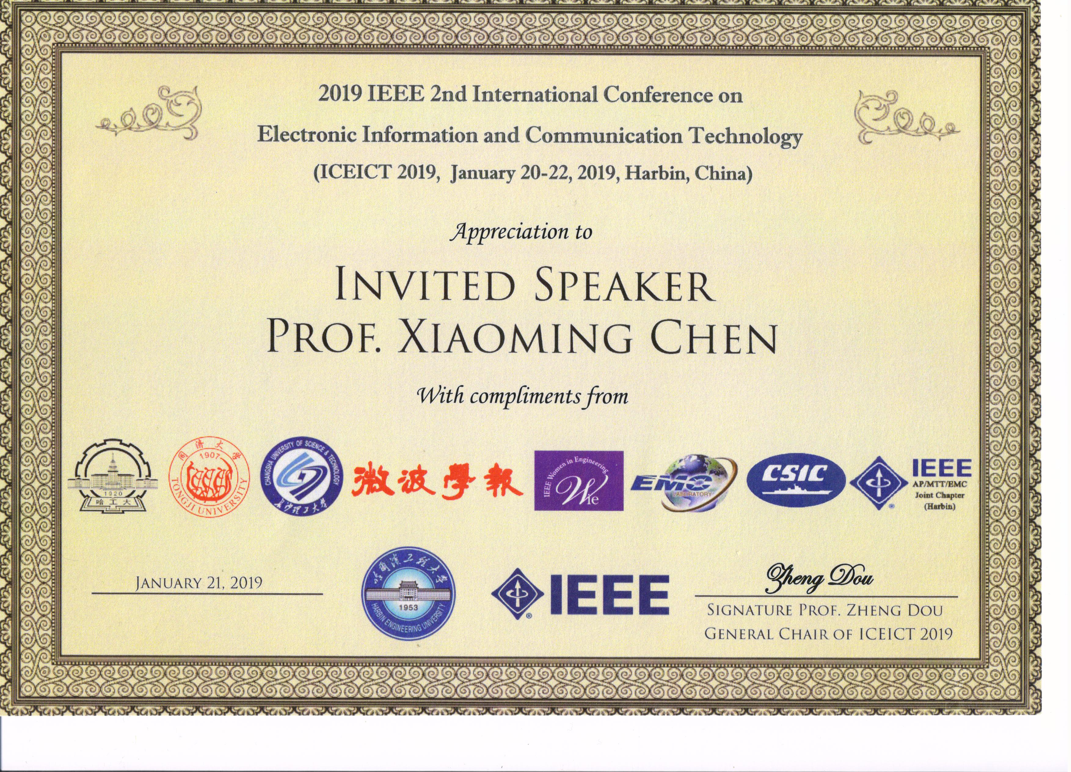 I am honored to deliever an invited talk and to receive the best paper award in ICEICT 2019.