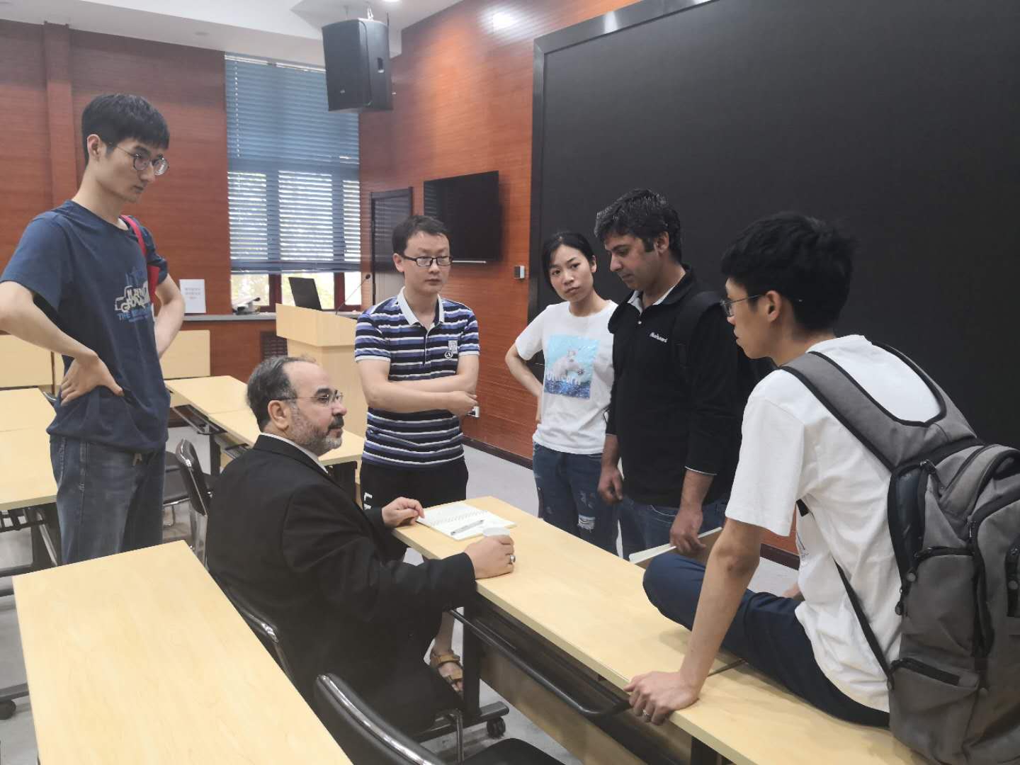 报告后Kishk教授和同学们讨论问题,耐心为同学解惑