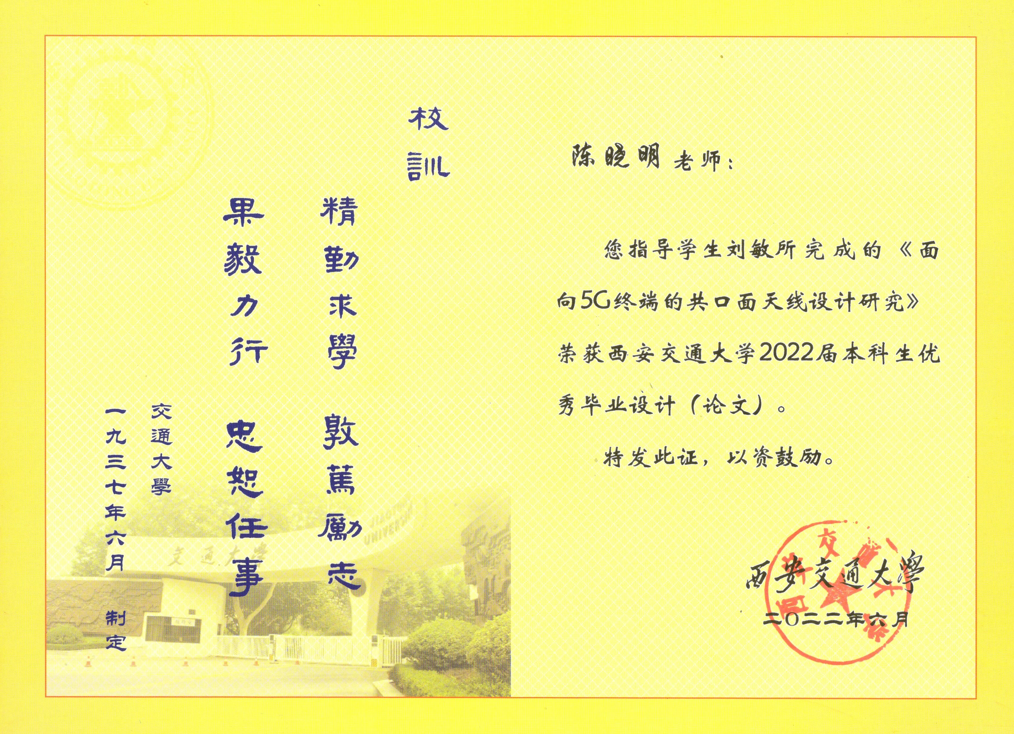 祝贺课题组刘敏同学获得校优秀毕设论文!