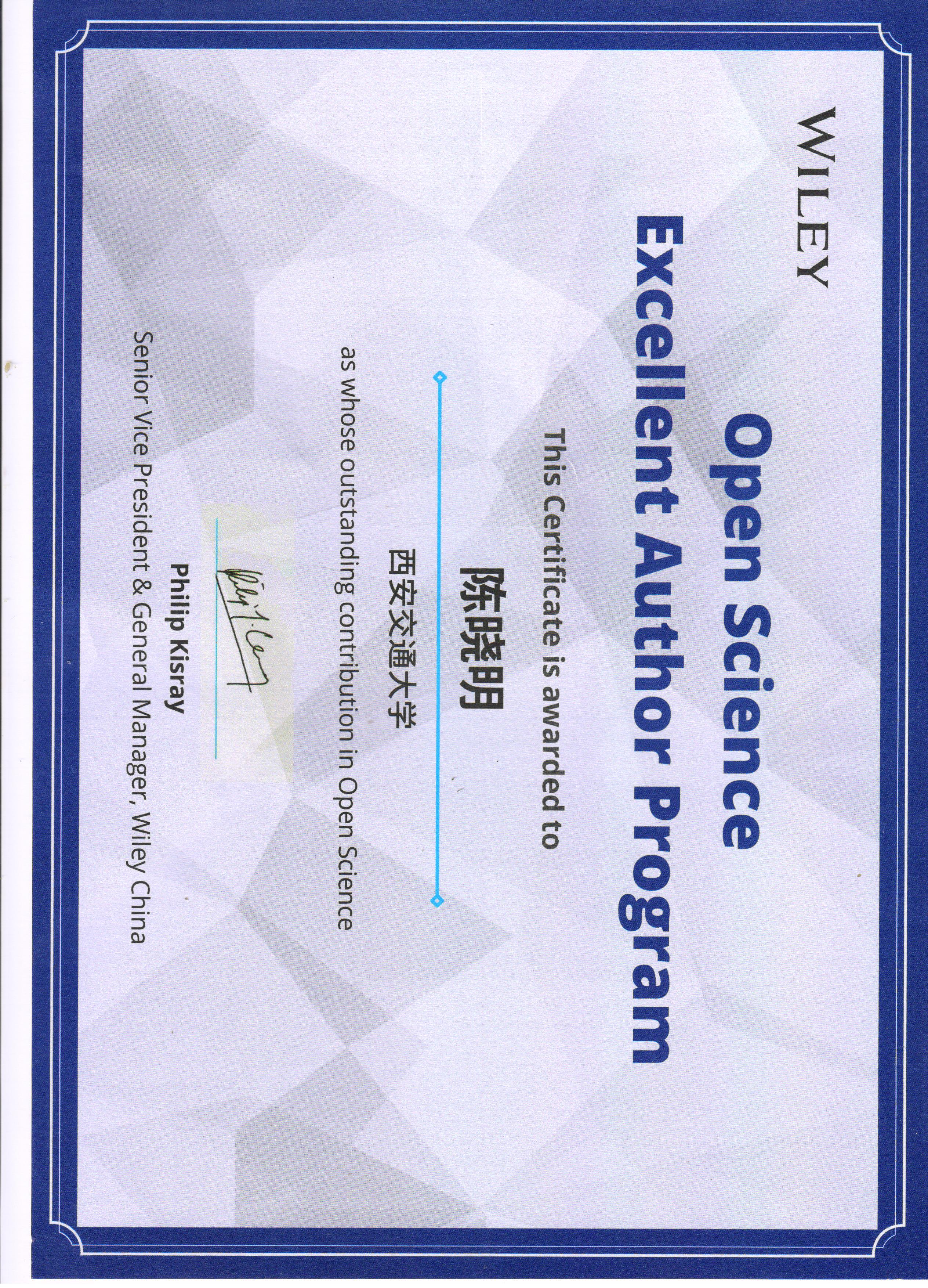 荣获Wiley中国开放科学高贡献作者