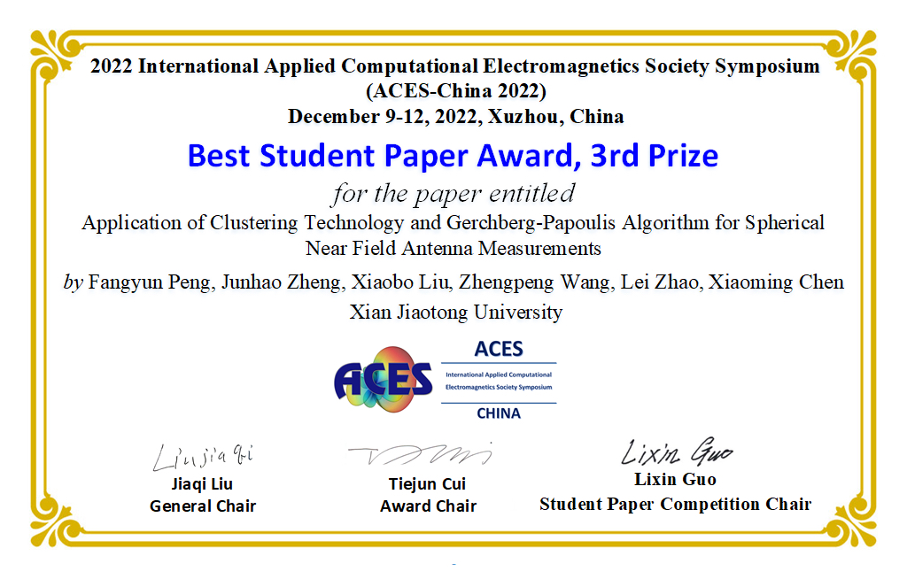 祝贺课题组彭方云同学获ACES-China2022最佳学生论文奖