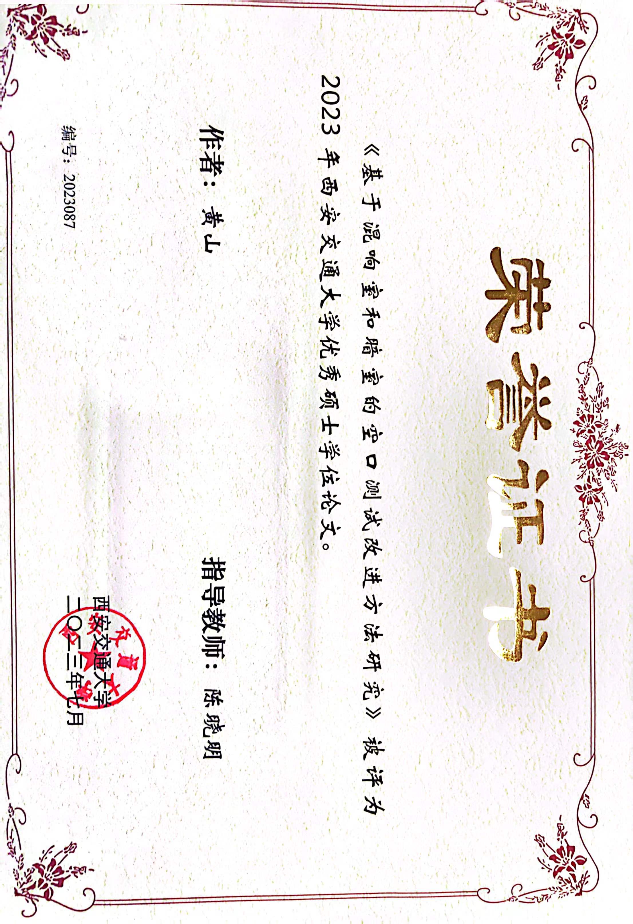 祝贺课题组黄山同学获得优秀硕士论文!
