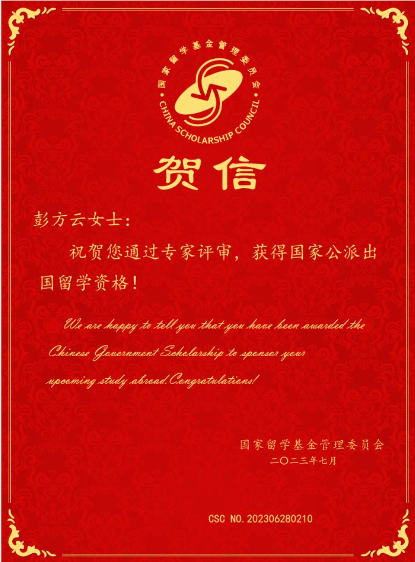 祝贺课题组彭方云同学获得CSC奖学金资助赴NUS访学