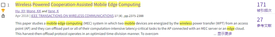 [5] Xiaoyan Hu*, Kai-Kit Wong, and Kun Yang, “Wireless Powered Cooperation-Assisted Mobile Edge Computing,” IEEE Trans. Wireless Commun. (TWC), vol. 17, no. 4, pp. 2375–2388, Apr. 2018, [link]. (SCI, IF: 10.7, 中科院1区Top, ESI 高被引论文、TWC热点论文)