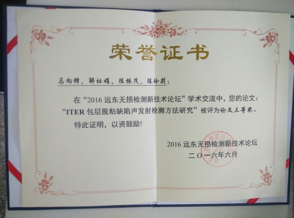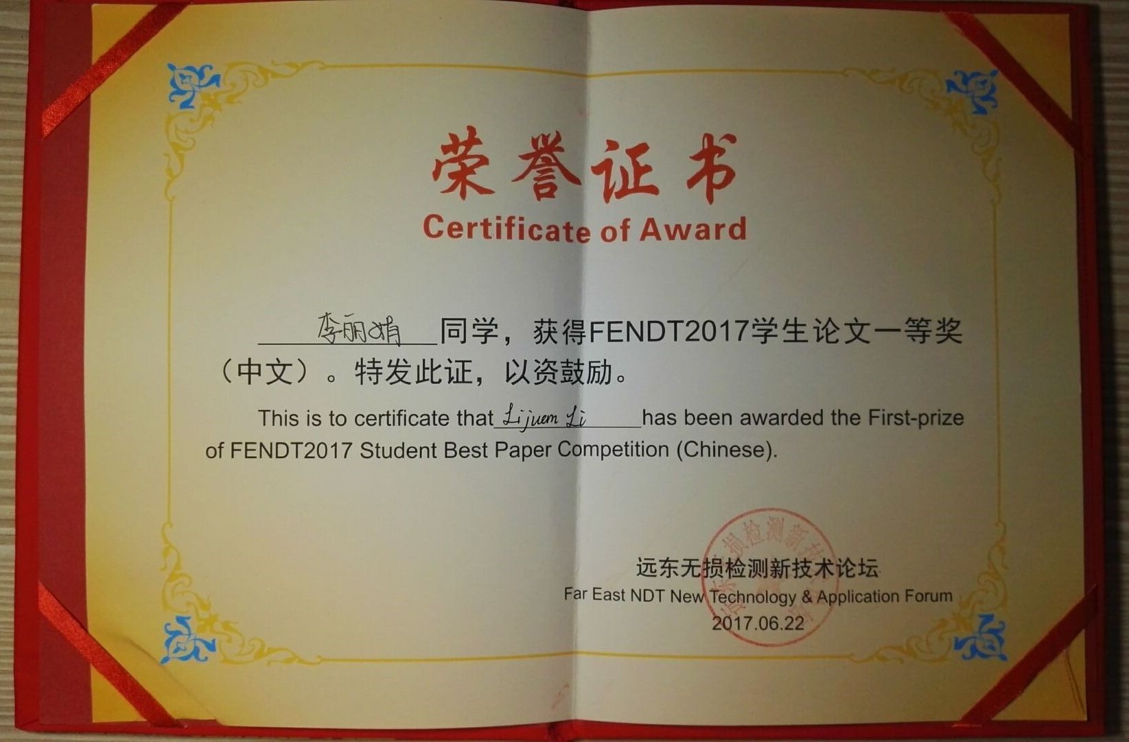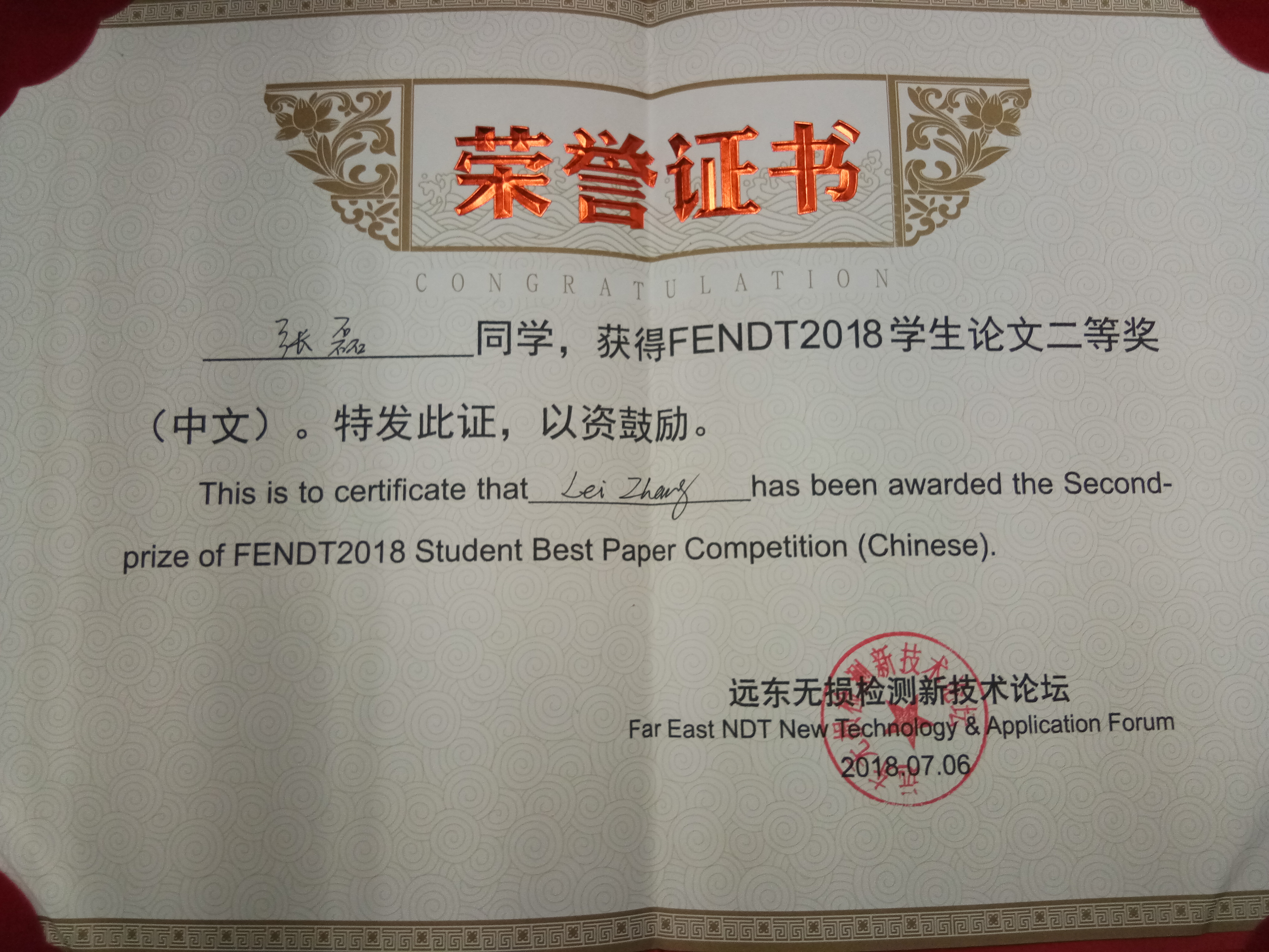 - 祝贺课题组成员荣获远东无损检测会议一等奖!