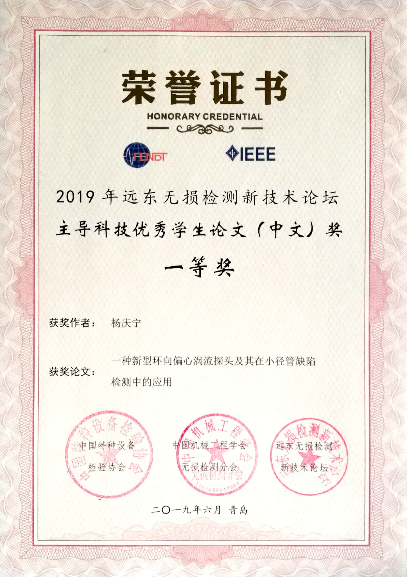 - 祝贺无损检测课题组成员在2019远东无损检测论坛上再获佳绩!