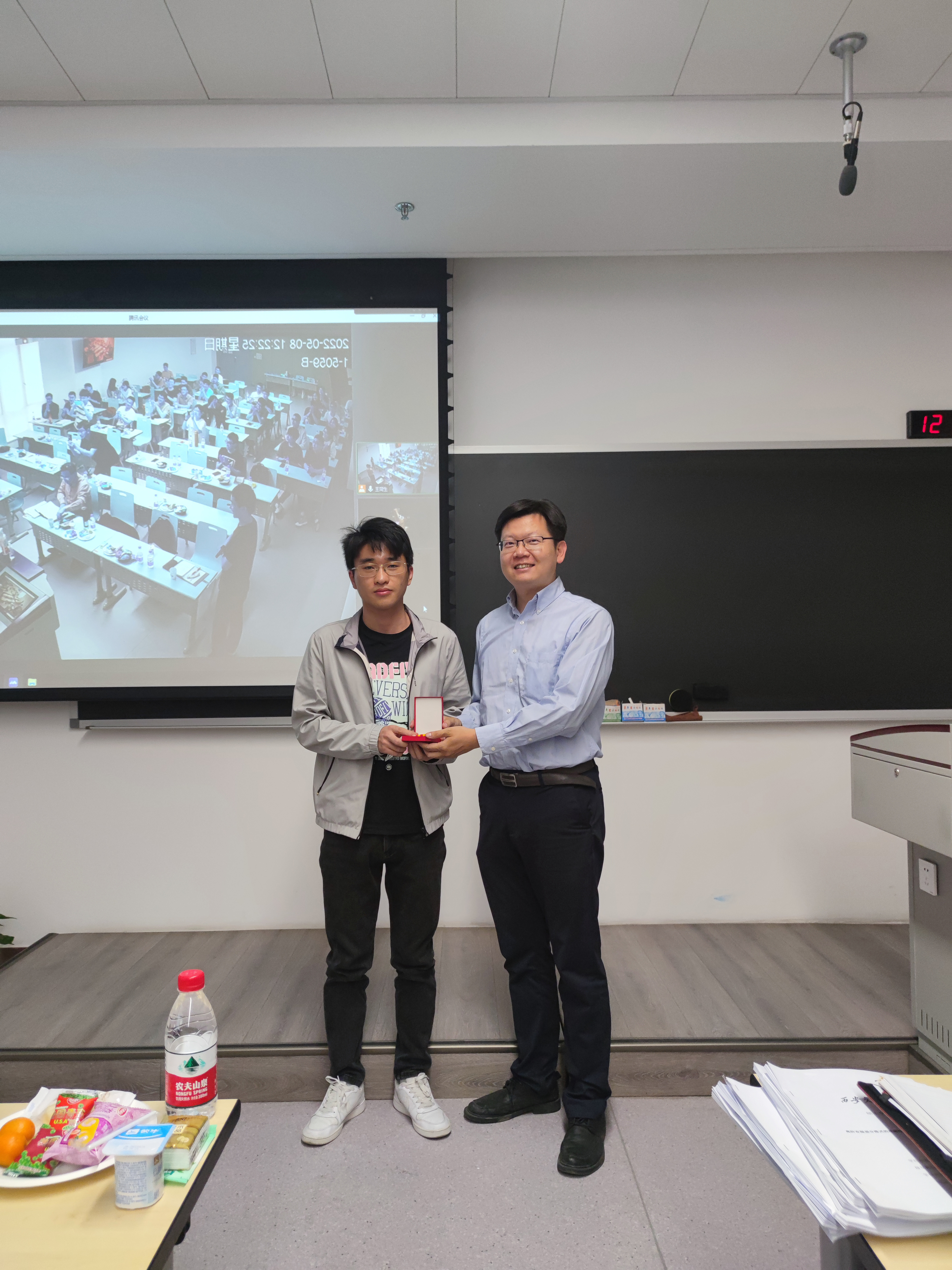 在活动的最后,借此机会大家相聚一堂,由在场的各位老师向近期举办的第一届流体机械创新团队“阳光杯”羽毛球友谊赛的获奖选手颁奖。